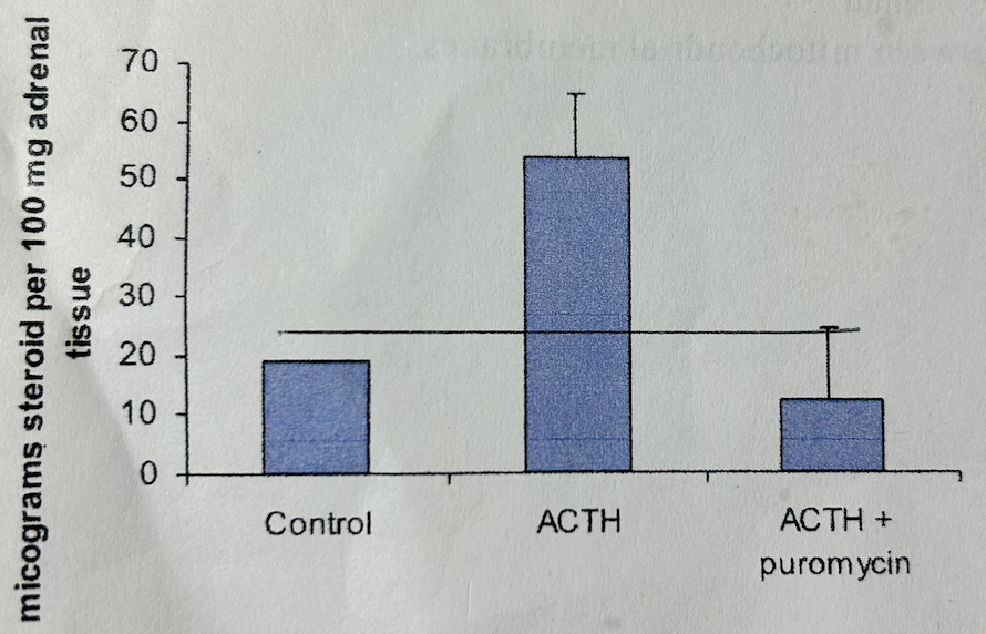 b) puromycin obliterates the ability of ACTH to acutely increase cortisol release