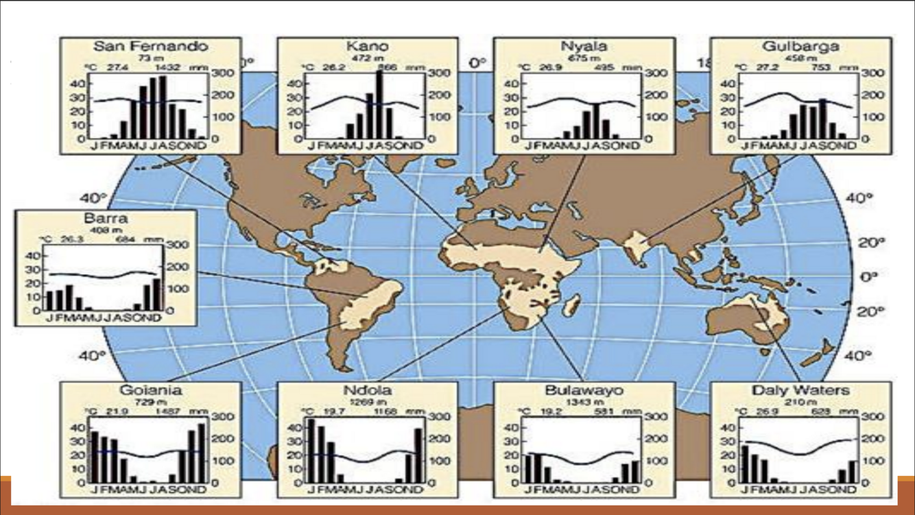 What are the characteristics of savannahs or tropical grasslands?