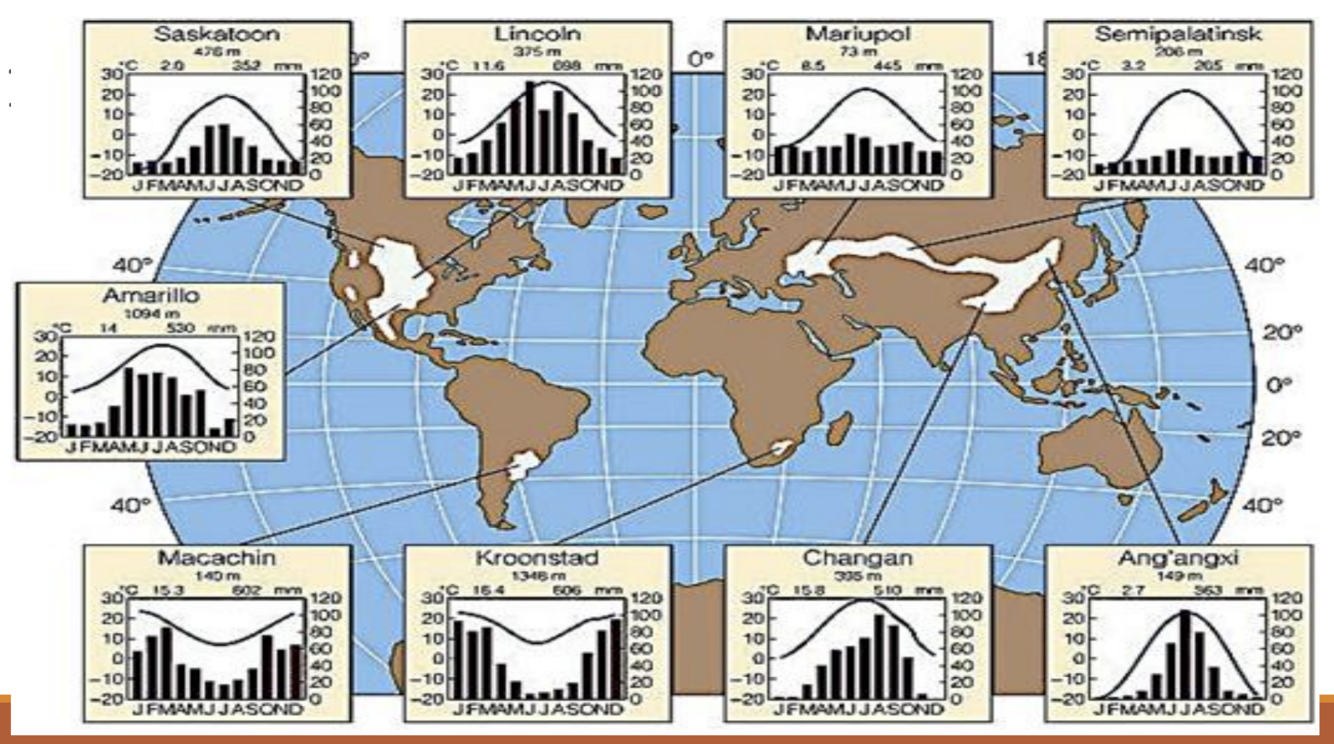 Temperate grasslands receive rain every month