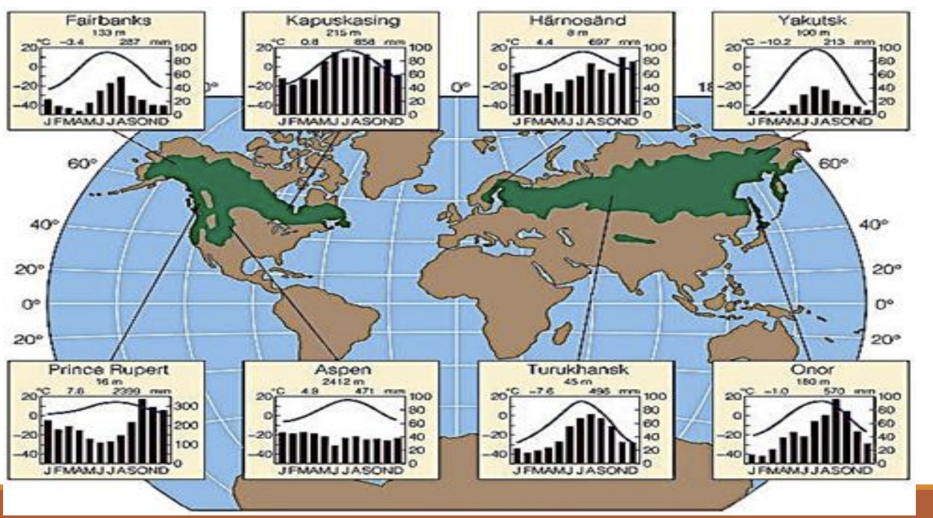 What climatic conditions are found in coniferous forests?