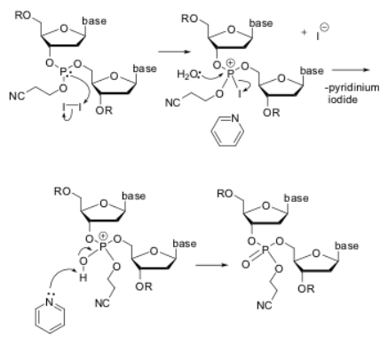 Oxn of P(III) to P(V) using iodine, water and pyridine