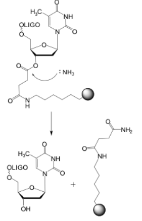 Succinyl linker used as can be cleaved by conc aq ammonia