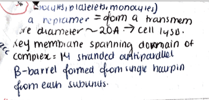 What forms a transmembrane pore diameter?