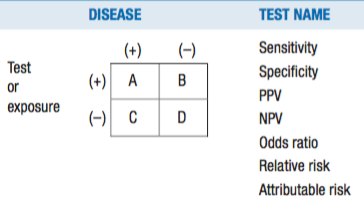 Sensitivity - ability of a test to detect disease