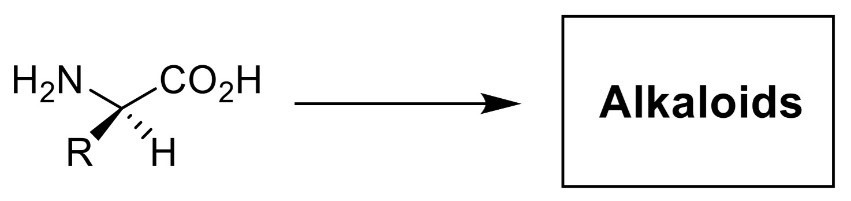 Most alkaloids come from an amino acid biosynthetic precursor. The most common amino acids used are ornithine, lysine, tryptophan, phenylalanine and tyrosine.