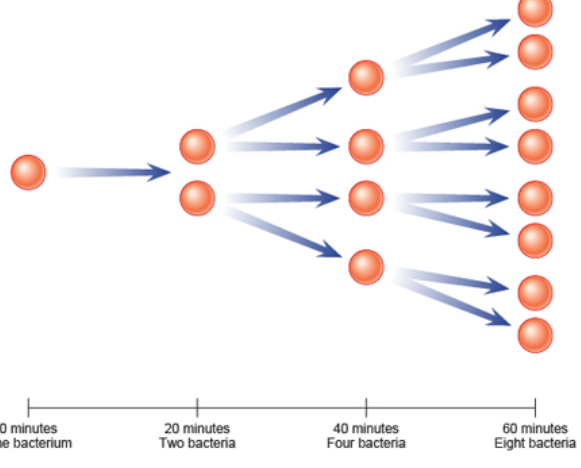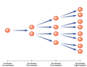 Each bacteria is capable of splitting into 2