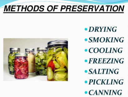 List some methods of preserving foods