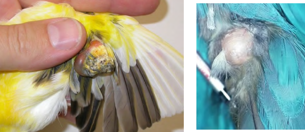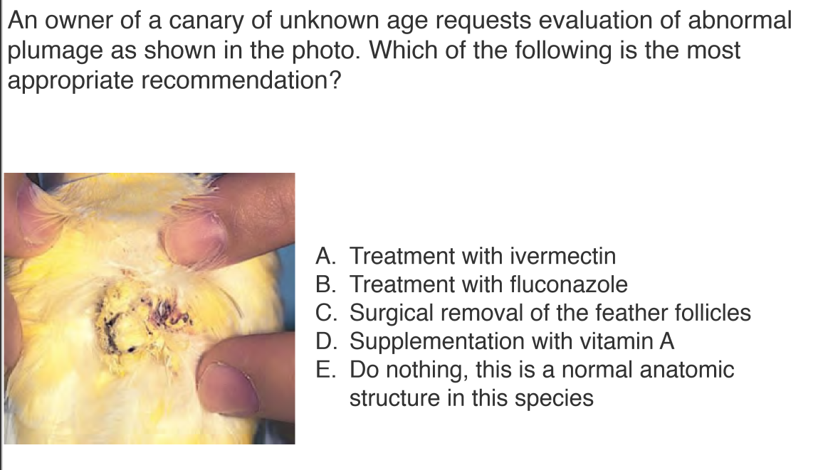 On a pre-purchase health exam of a 7 yr green cheeked conure, you astutely notice a small, bilobed swelling at the base of the tail that has a few protruding short feathers. It feels greasy and the bird is sensitive to the touch. What do you recommend to the owner?