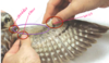 moving the feathers to the sides for physical exam or wound care