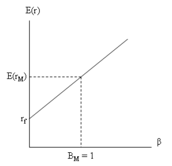 Relationship between beta and expected return; all securities must lie on SML in market equilibrium