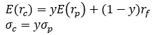 expected return and std dev of return for a complete portfolio (with risk free assets and risky assets) where portion invested in risky assets P = y