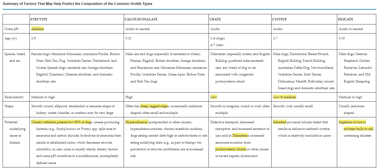 Which uroliths are not amenable to dissolution and therefore requir removal?