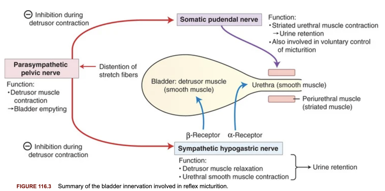 Describe control of micturition as it relates to the innervation of the bladder.