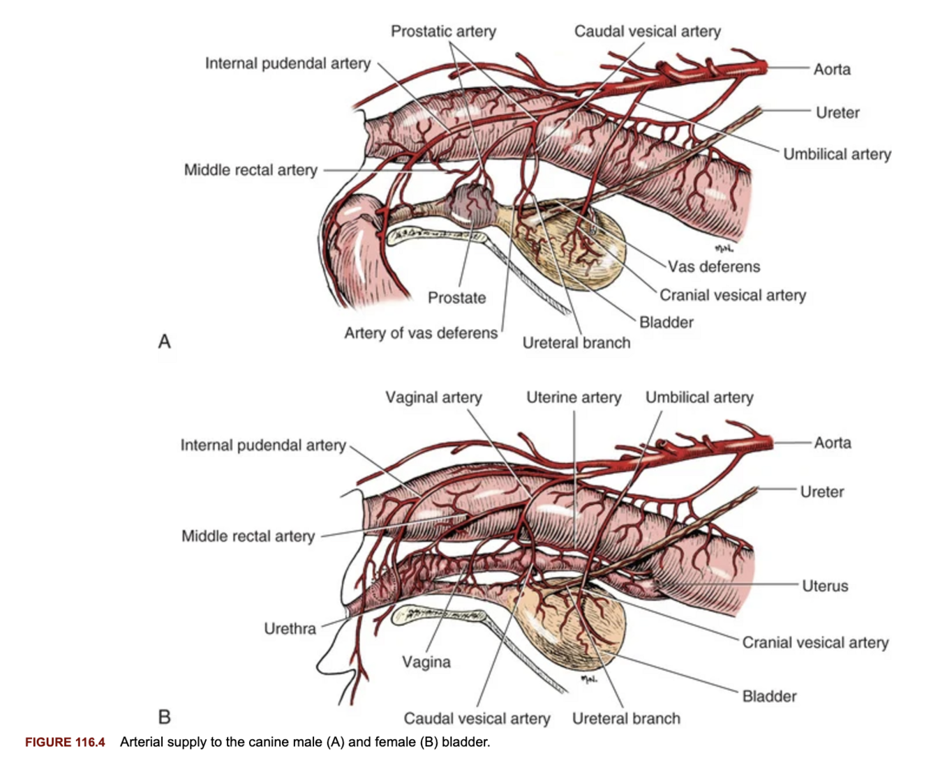 If the umbilical artery remains patent into adulthood a cranial vesical artery may also contribute.