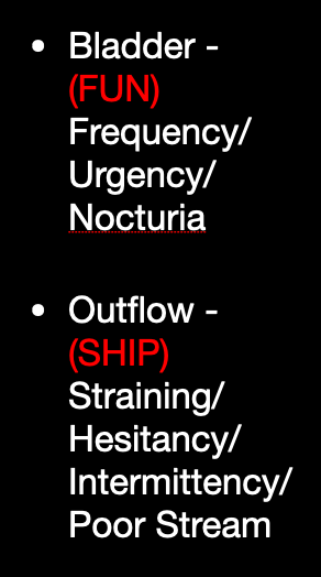 5a reductase inhibitors - reduce testosterone so shrink prostate, but need to consider the side effect profile