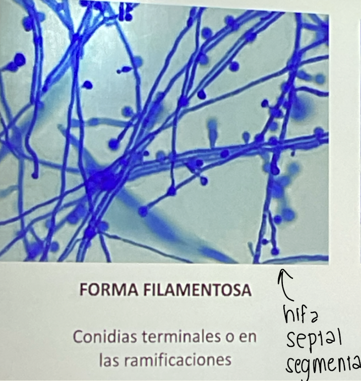 conidias terminales o en ramificaciones (hifas septales segmentadas)