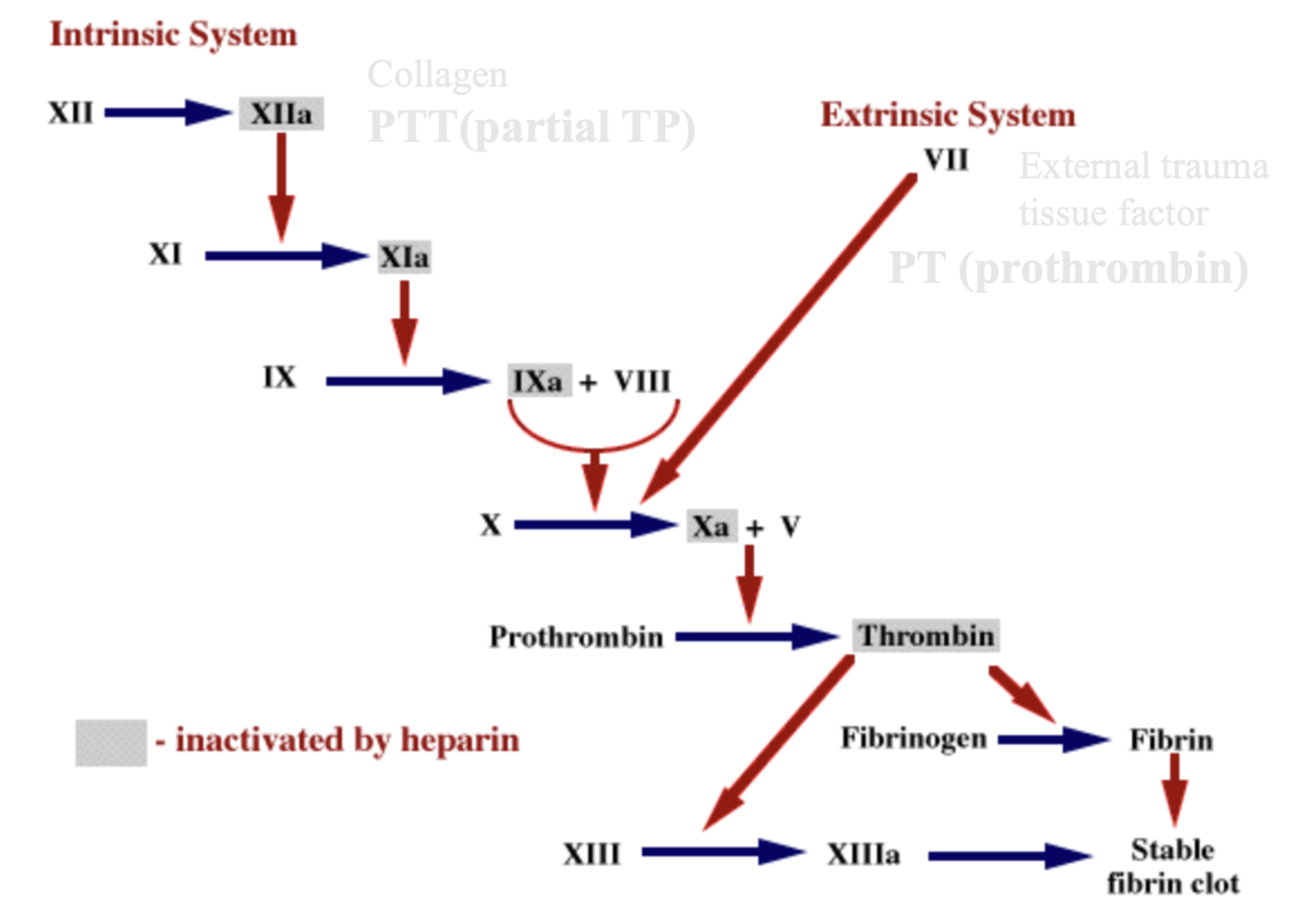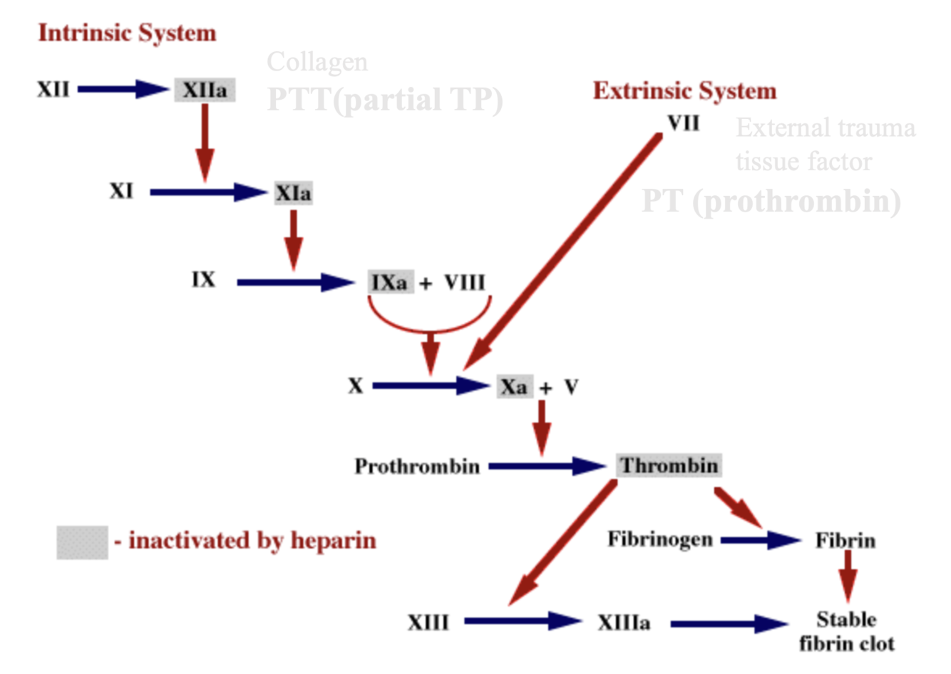 Factor V, X, prothrombin and fibrinogen are all measured in BOTH PT & PTT, which factors are specific to the PT pathway? PTT pathway?