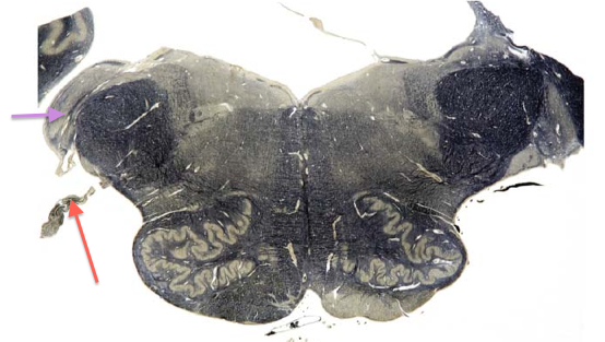 Thoracic spinal cord (myelin-stained); WM>GM