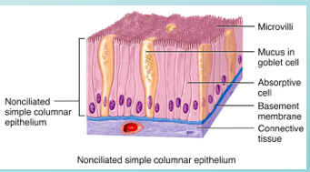Goblet cells are simple columnar cells that have differentiated to acquire the ability to secrete mucous