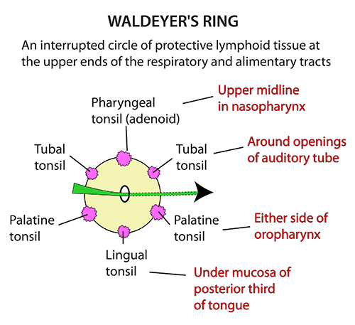 Formed by the arrangement of MALT in the nasopharynx and oropharynx to create a lymphoid ring
