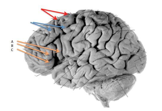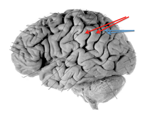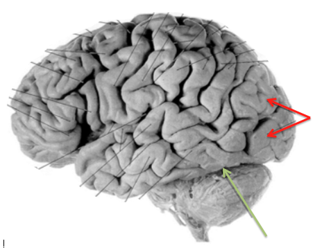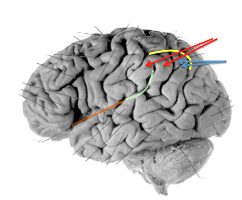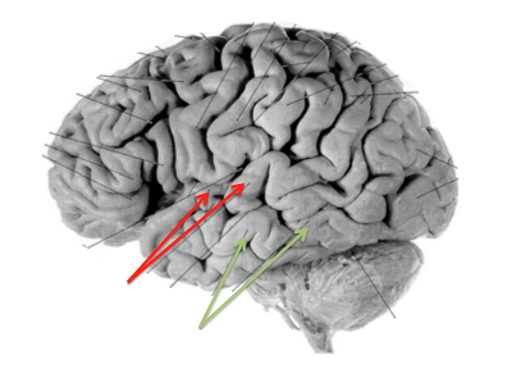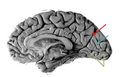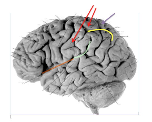 Orange/green: lateral sulcus