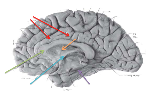 Red: Cingulate gyrus (mood, personality)