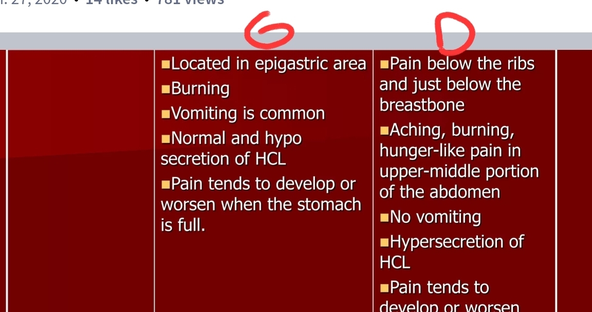 gastric vs duodenal ulcer pain?
