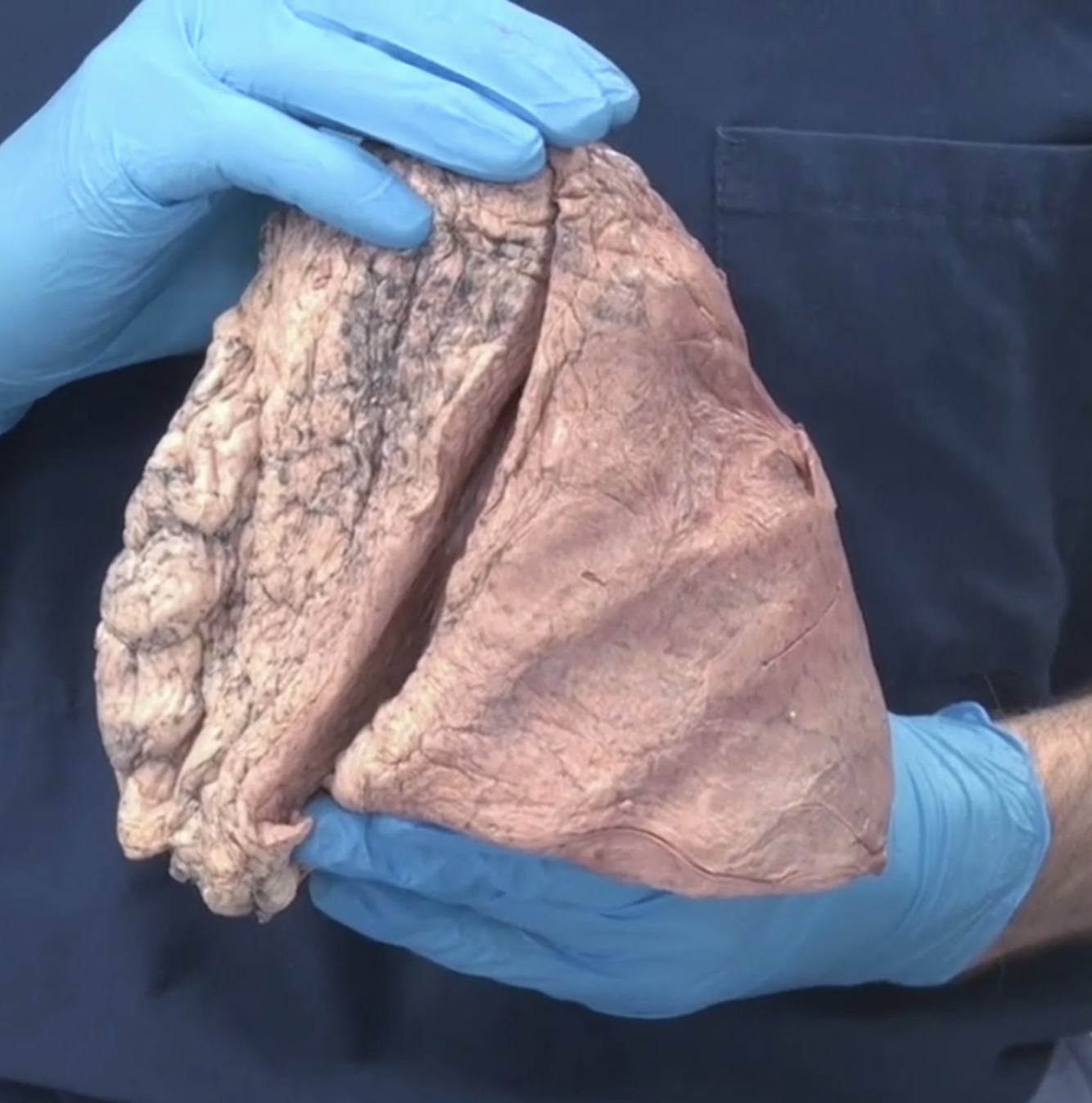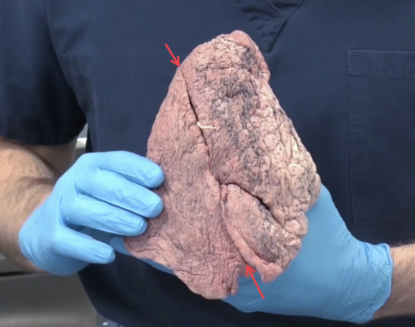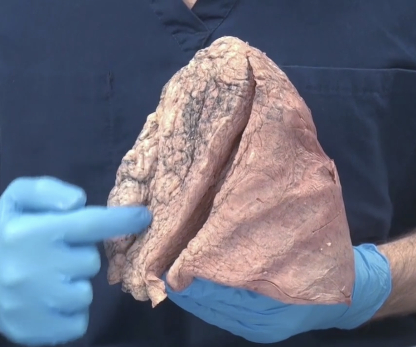 A peanut is aspirated while the person is standing - what part of the lung will it most likely be found?