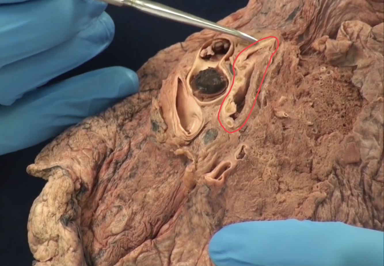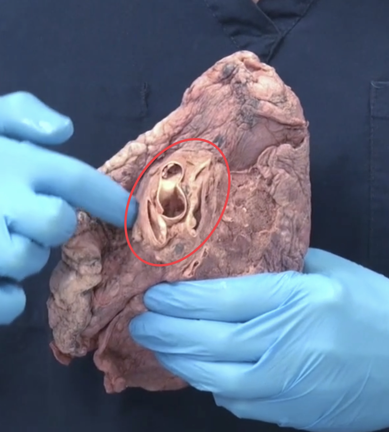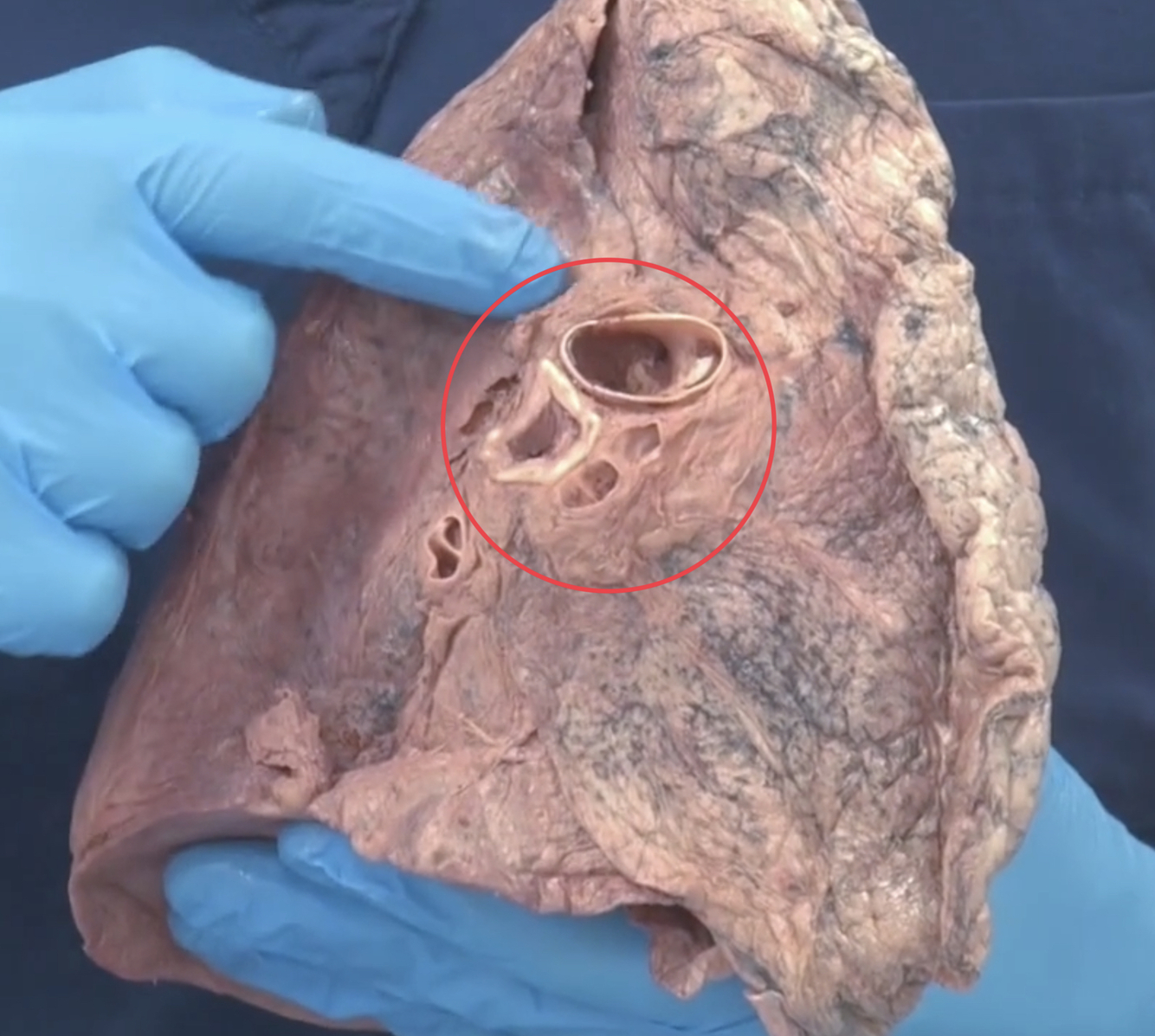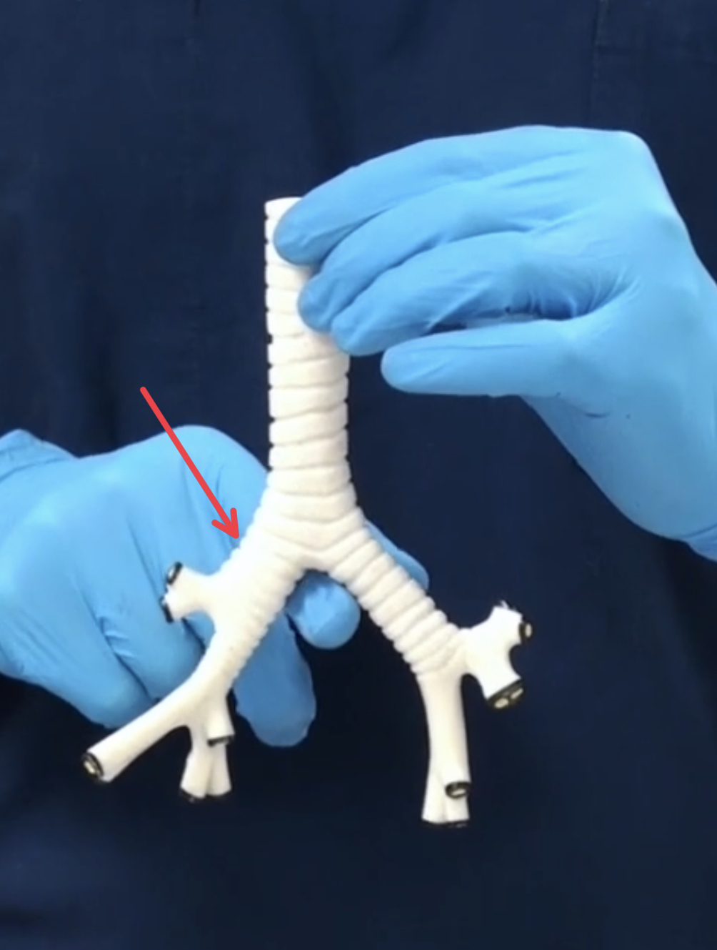 Inhaled object typically become lodged in the right lung after passing through what structure of the trachea