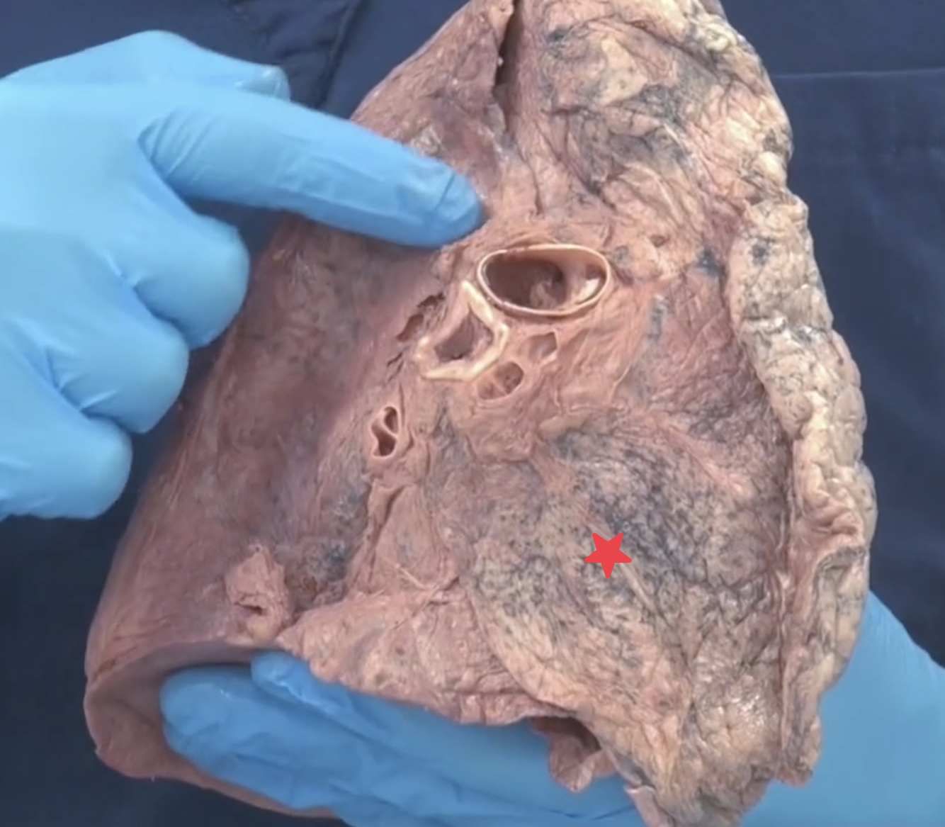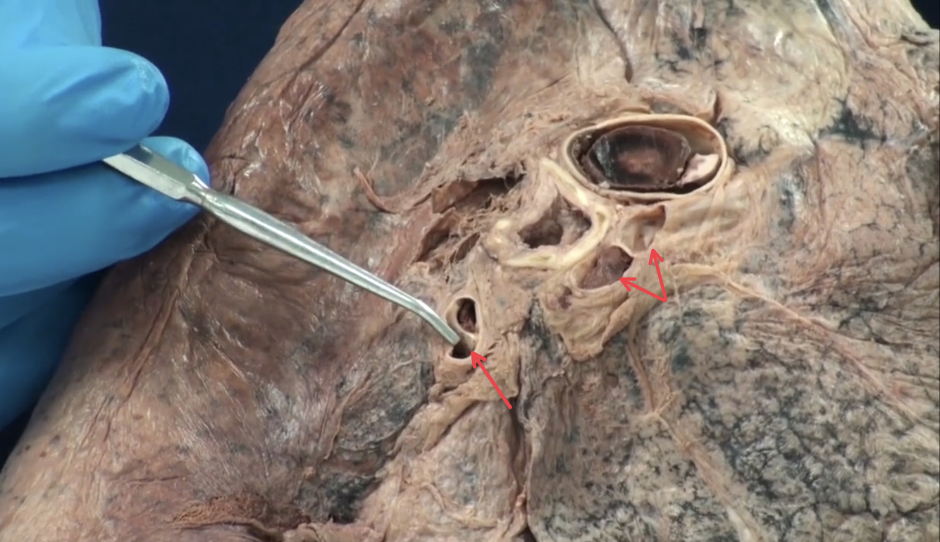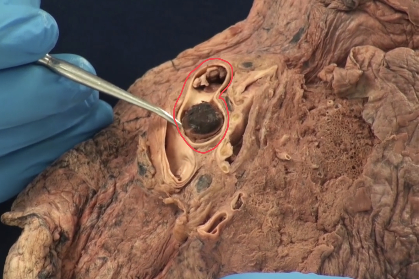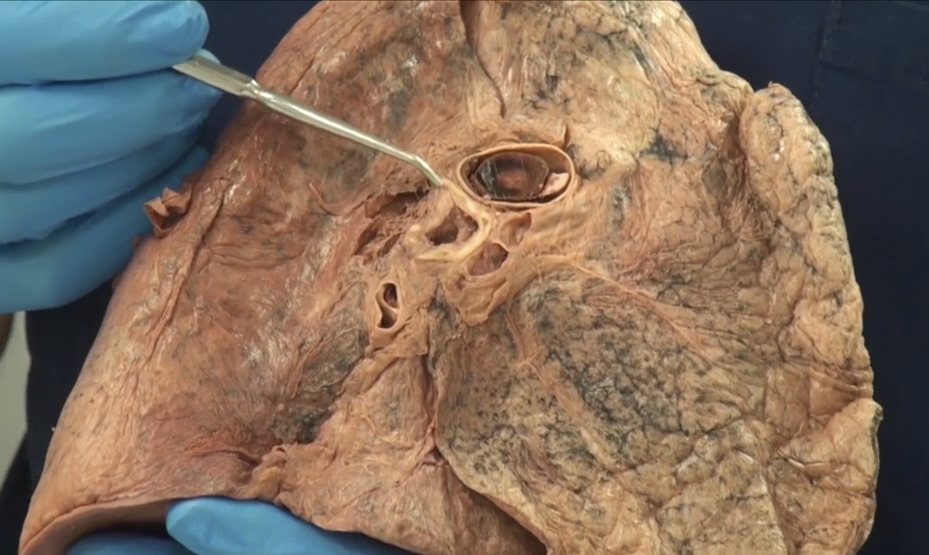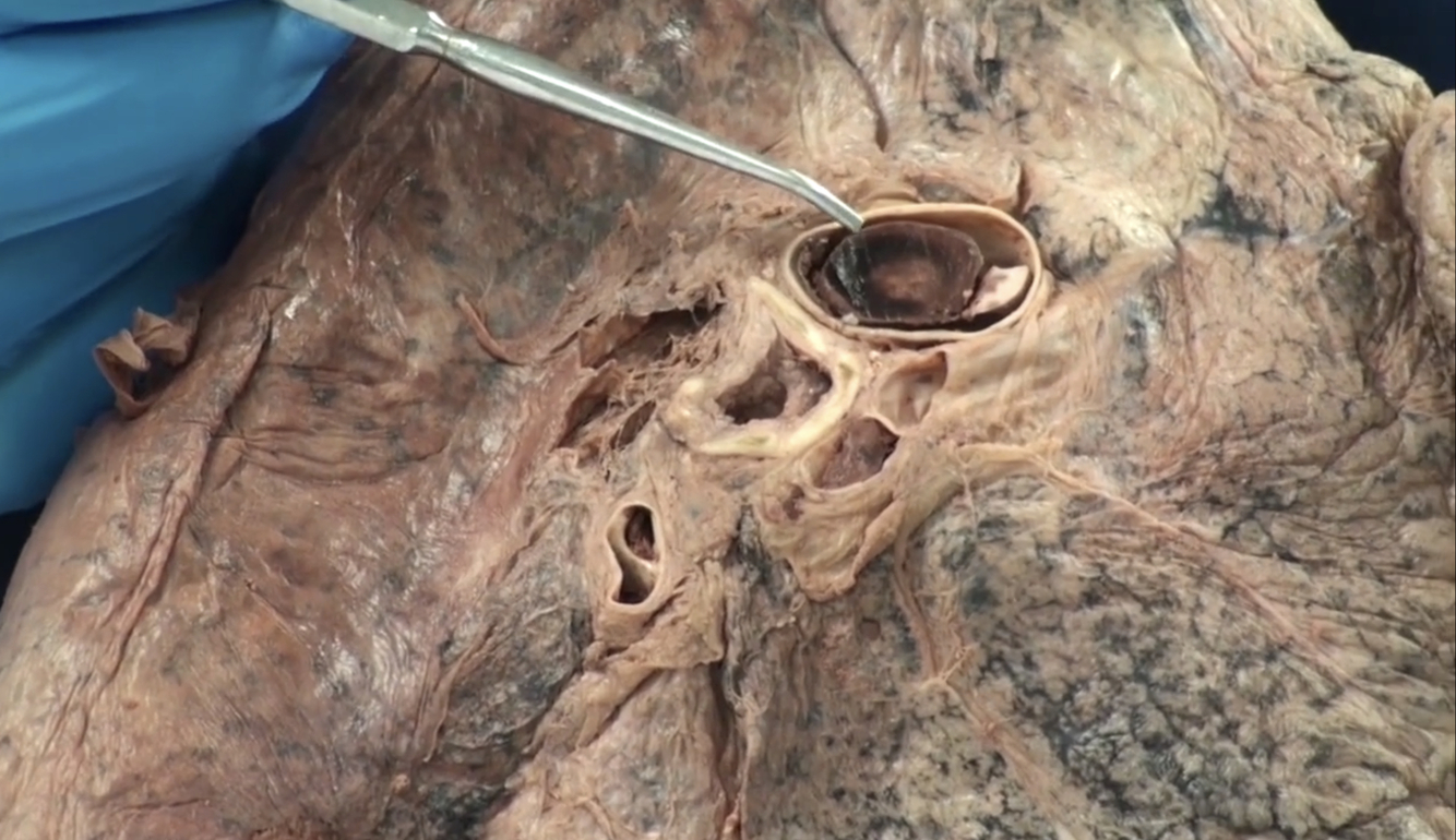 Inhaled object typically become lodged in the right lung after passing through what structure of the trachea