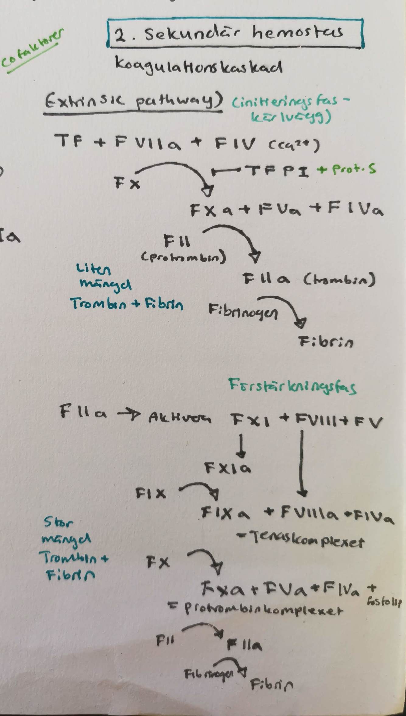 Extrinsic pathway Initieringsfas => liten mängd Trombin + Fibrin