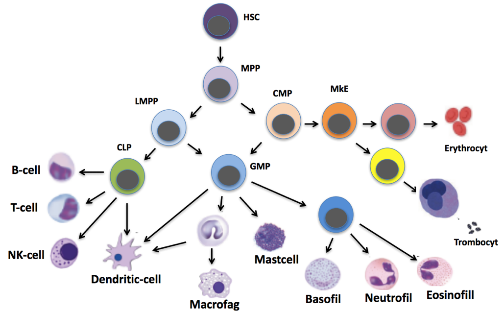 ifrån vilka celler bildas grnaulocyter och makrofager?