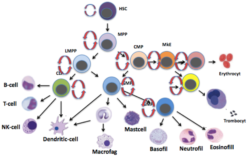 vilka tre grenenar finns i det i hematopetiska trädet?