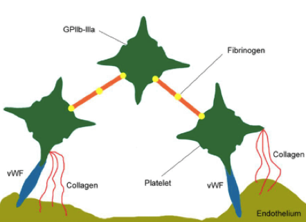 è gör att plättarna binder och skapar en plugg runt skadan. De kan binda till endotelet via vWF, men inte till varandra på det sättet. De binder till varandra via: