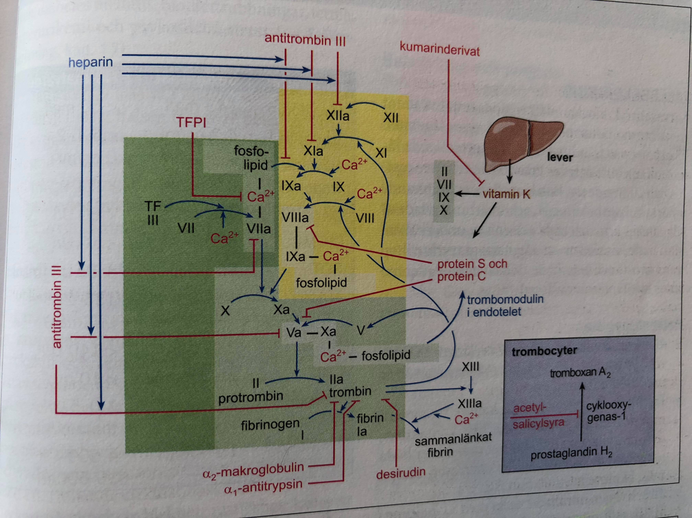 · Vissa av koagulationfaktorerna (II, VII, IX och X) är beroende av aktiverat vitamin K för att de ska fungera. Genom att hämma aktiveringen av detta vitamin kan man hämma dessa faktorer och därmed hela den normala koagulationen