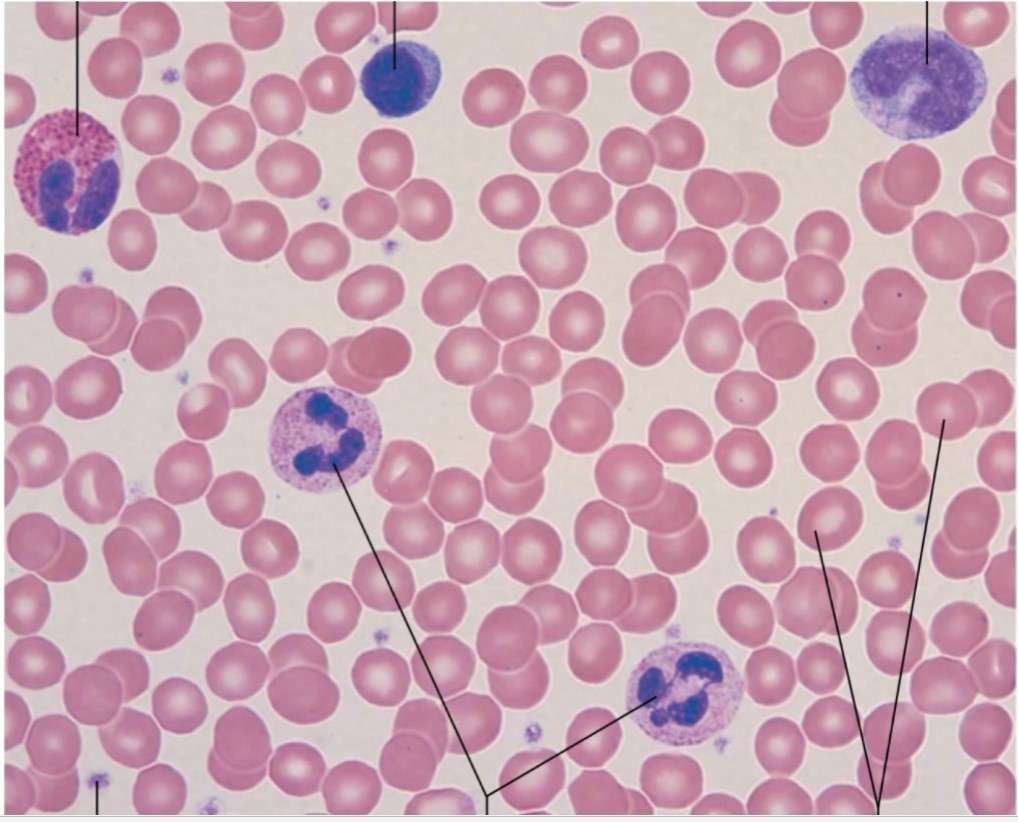 Erythrocytes (red blood cells), leukocytes (white blood cells), and thrombocytes (platelets)