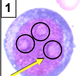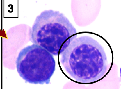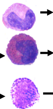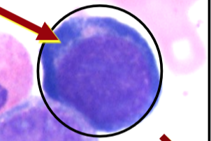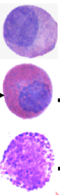 Promyelocyte - Azure granules (lysosomes) produced in conjunction with the rough ER and Golgi complex