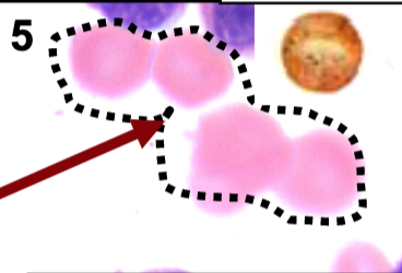 Metamyelocyte - Nucleus indents. Many specific granules, few azure granules.