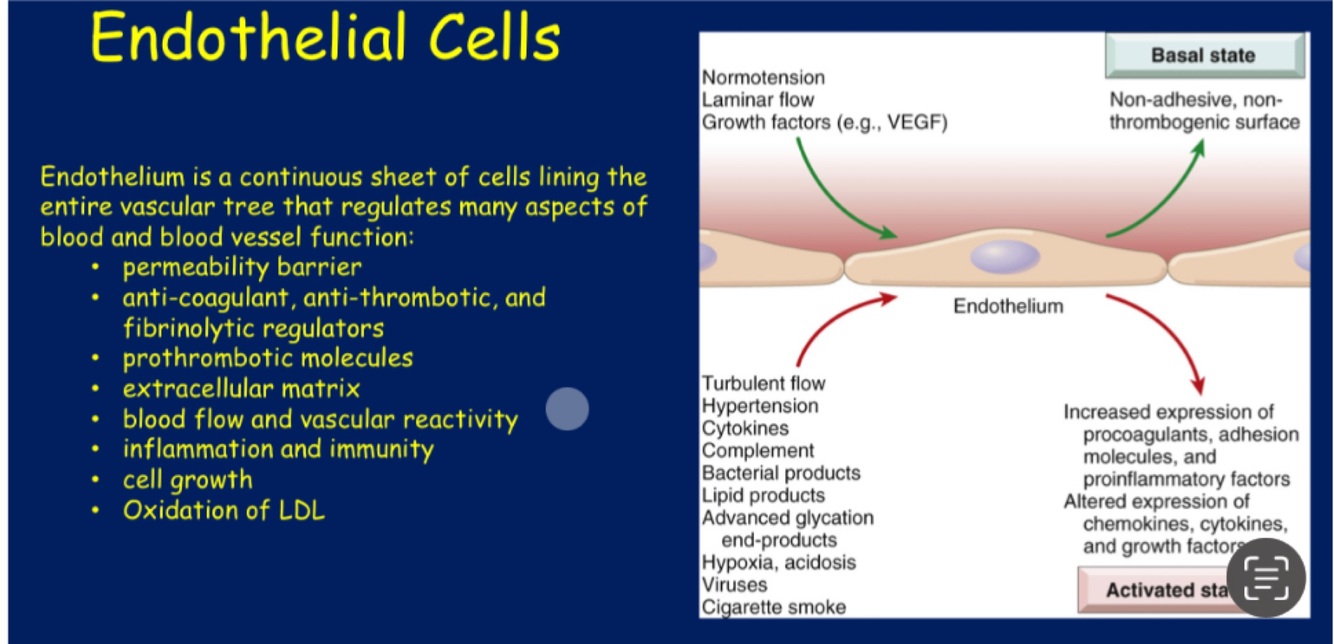 Endothelial cells property/function and mediators/products