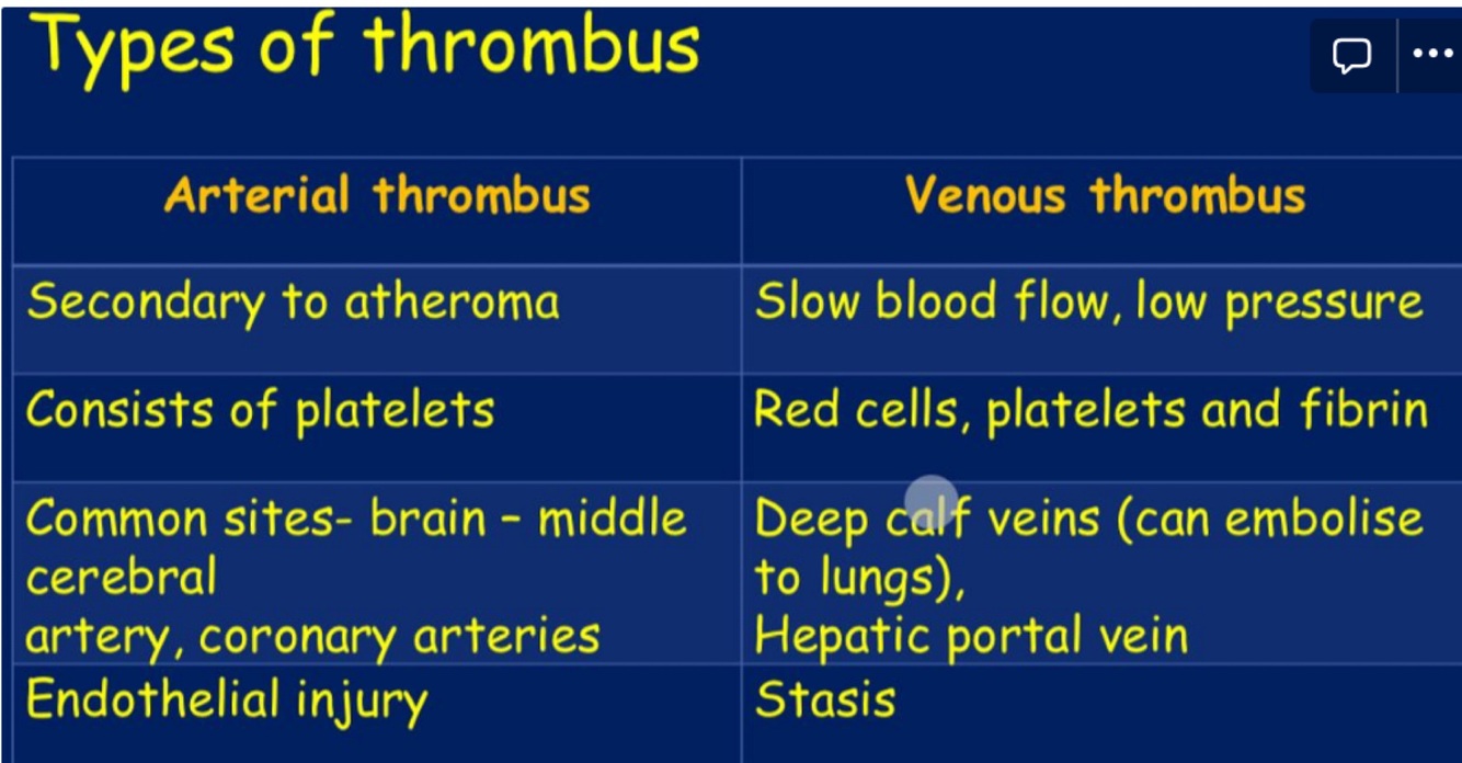 Arterial vs venous thrombus