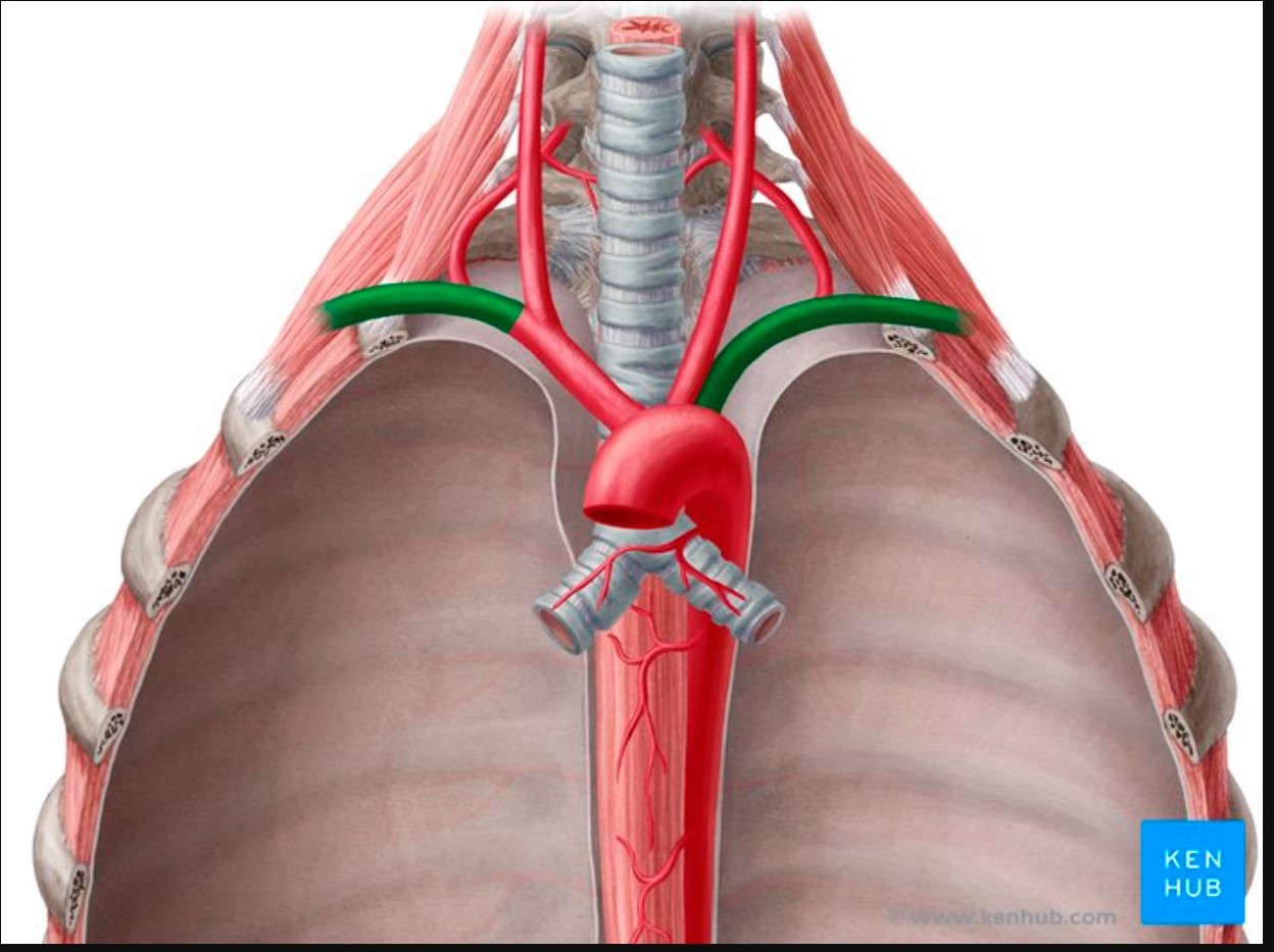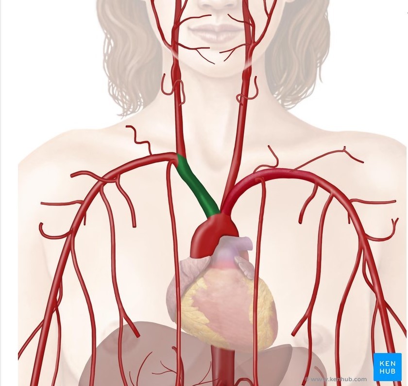 a pair of large arteries in the thorax that supply blood to the thorax itself, head, neck, shoulder and arms. Depending on the side of the body, it can have two origins: the aortic arch on the left and the brachiocephalic trunk on the right.