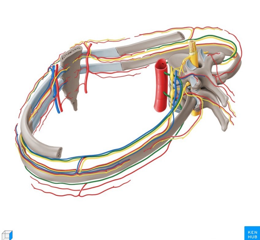 The posterior intercostal arteries are the arteries that supply the back muscles, vertebral column, spinal cord segments, and the overlying skin in the related area and are found within the intercostal space