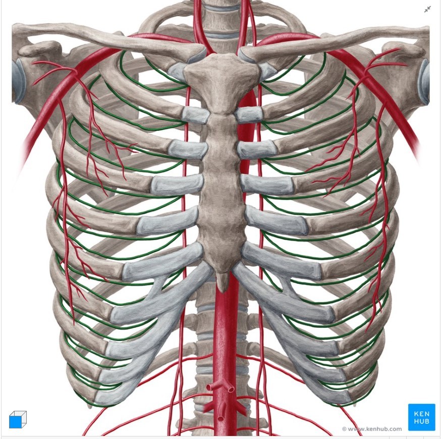 paired (left and right) structures. There are nine pairs of the anterior intercostal arteries, occupying the upper nine intercostal spaces.