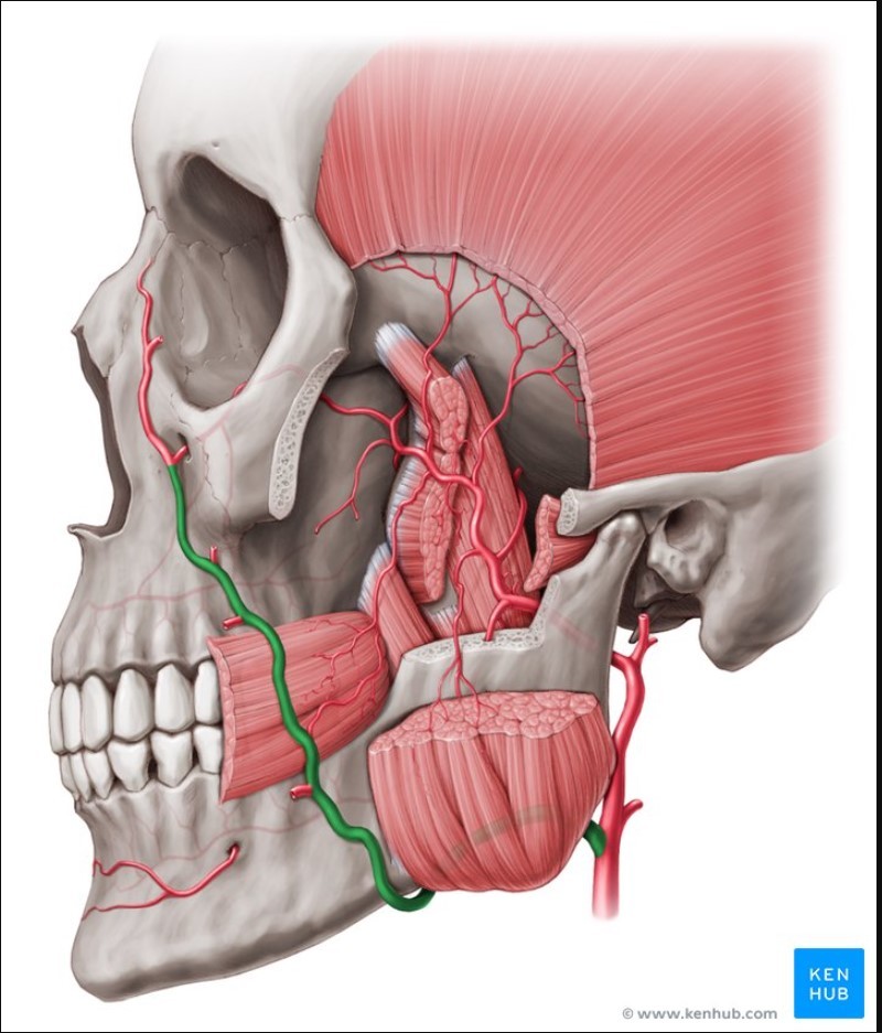 a branch of the external carotid artery that supplies structures of the superficial face.
