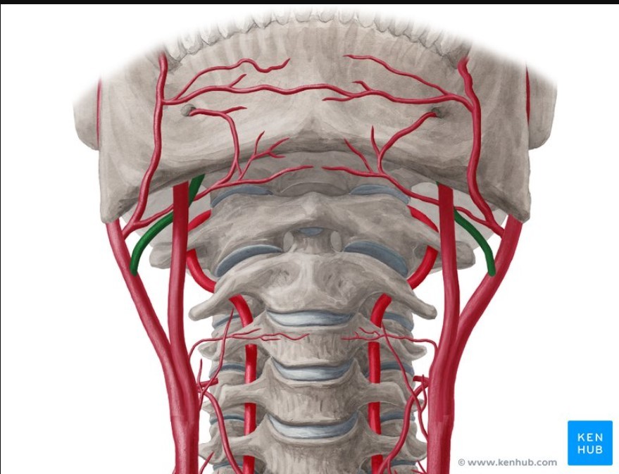major arteries of the neck. Typically, the vertebral arteries originate from the subclavian arteries. Each vessel courses superiorly along each side of the neck, merging within the skull to form the single, midline basilar artery.