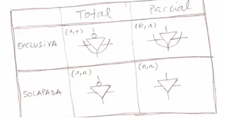 En el modelo E/R, en la jerarquia de relaciones, cual es el maximo de la fila solapada?