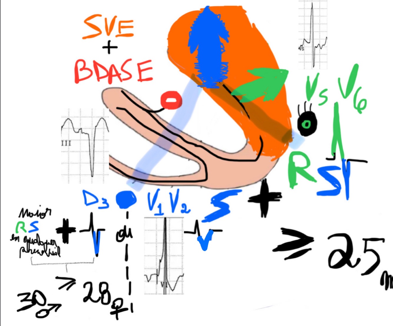 ASSOCIADO a morfologia de BRE c/desvio do eixo p/esquerda no plano frontal (DI ,aVL)▪️Este tipo de BRD é causado pela associação simultânea com BDAS de alto grau frequentemente acompanhado por SVE grave🏋️♂️
