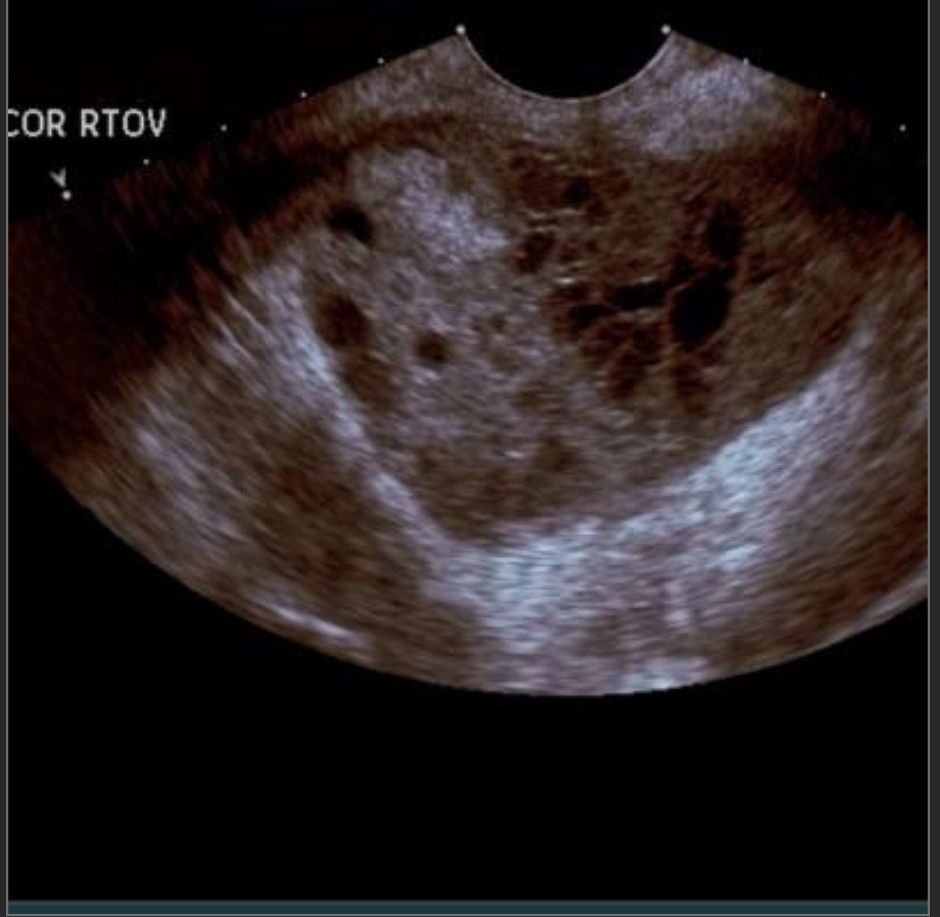 complex fluid next to the ovary w/appropriate history