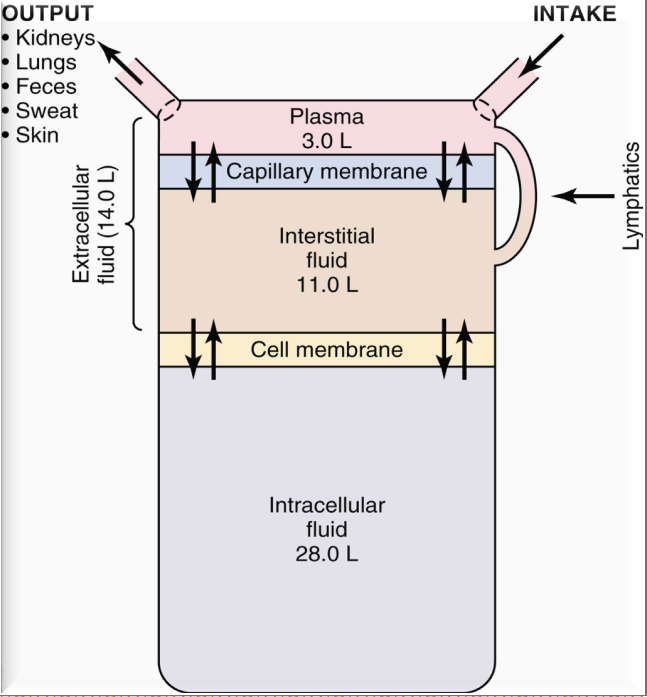 2/3 total body water (c.28L)