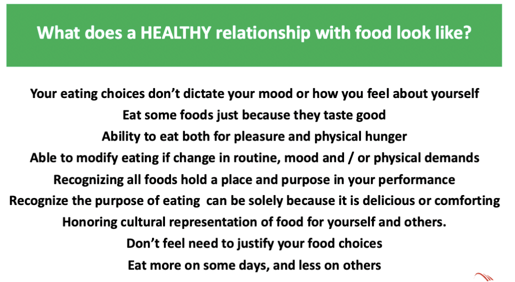Positive approach to food – listen to our bodies and eat for fuel, enjoyment, and satisfaction
